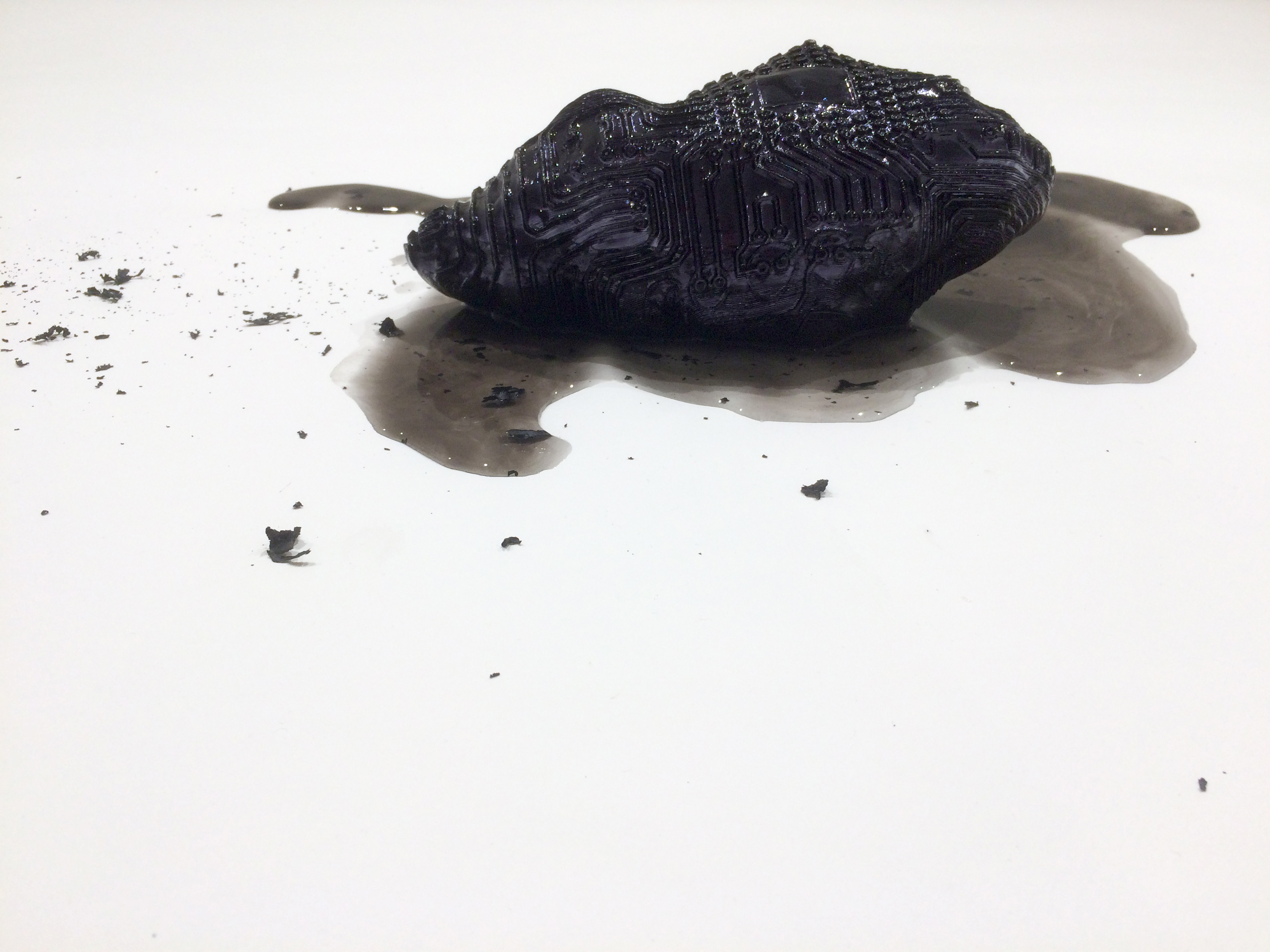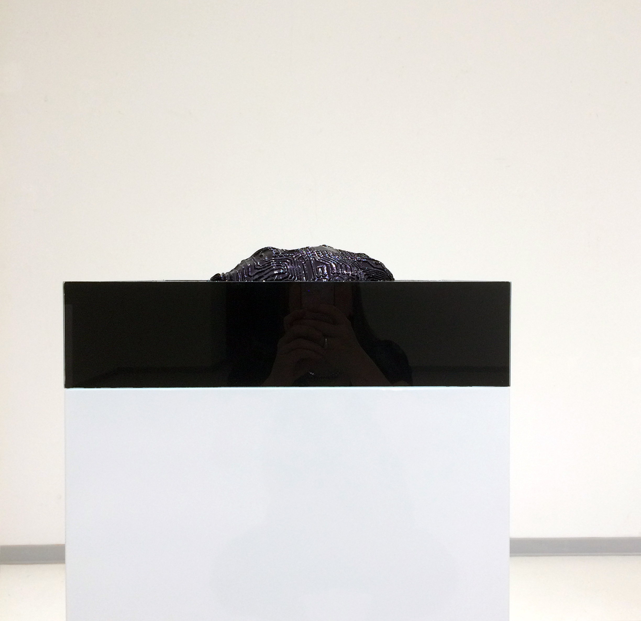 The surface is covered with memory circuits which I understand as a symbol of the human world. It is like ‘’branding an animal to show the ownership.’’